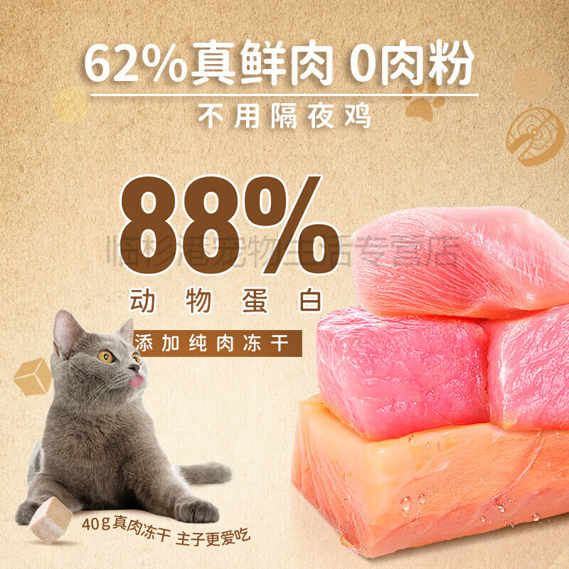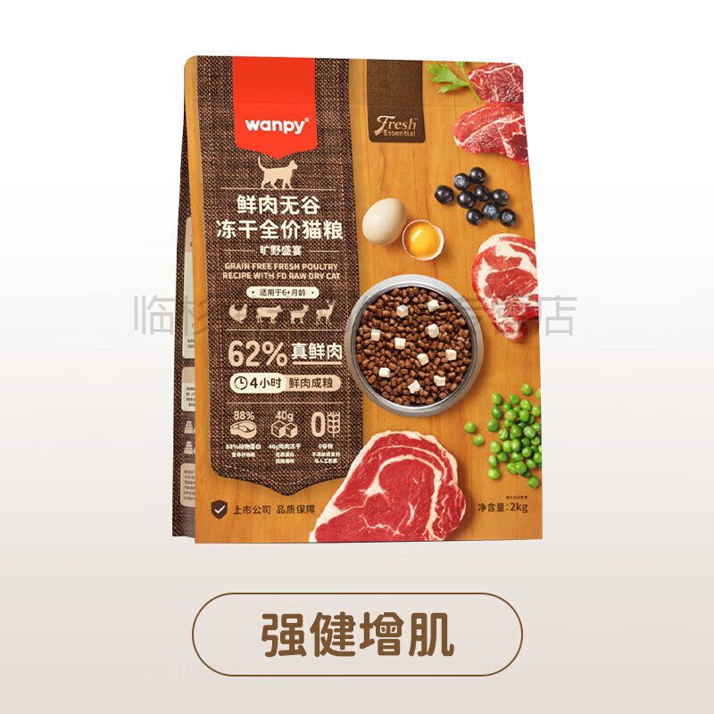顽皮鲜选鲜肉无谷成猫幼猫粮增肥发腮冻干营养猫粮真鲜肉2kg 62%真鲜肉-旷野盛宴 2kg