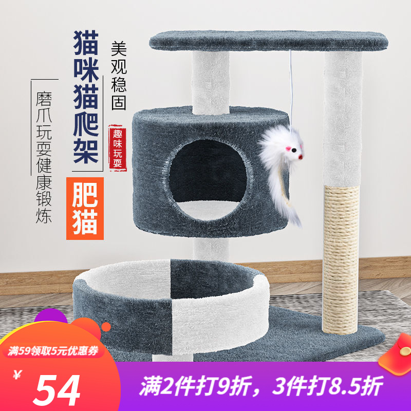 唐宠 猫爬架猫窝猫树一体通天柱猫咪用品耐磨耐抓猫抓柱猫塔四季通用肥猫咪玩具小型猫窝别墅 灰色普通款【适合10斤内】