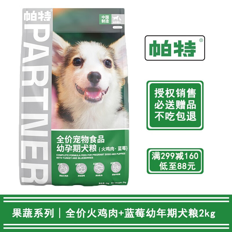 帕特狗粮 蓝莓鸡肉牛肉果蔬配方 全犬种泰迪金毛哈士奇通用粮 蓝莓鸡肉味幼犬粮2kg