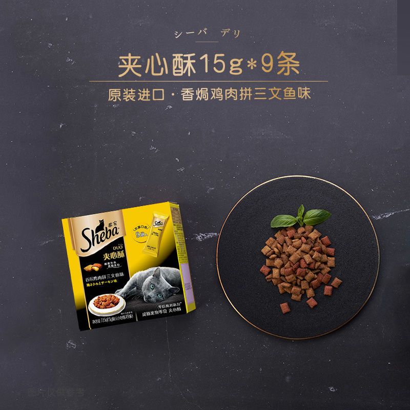 希宝猫条毛条夹心酥猫咪零食成猫幼猫猫猫零食营养洁齿15g*9条 热】香焗鸡肉拼三文鱼味15g*9条 【单盒】15g*9条