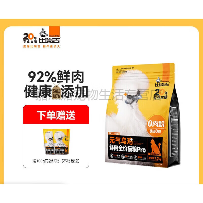比瑞吉元气乌鸡无谷0肉粉猫粮冻干鸡肉 全阶段通用鲜肉主粮成猫粮 【鲜肉含量92%,真乌鸡】鲜肉全 1.5kg