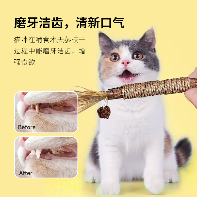 磨牙棒猫玩具木天蓼自嗨解闷猫薄荷球逗猫棒耐咬猫咪用品养猫神器 升级木天蓼小号1根