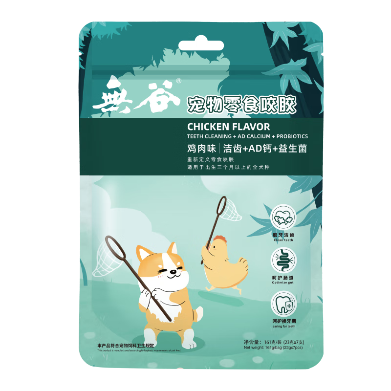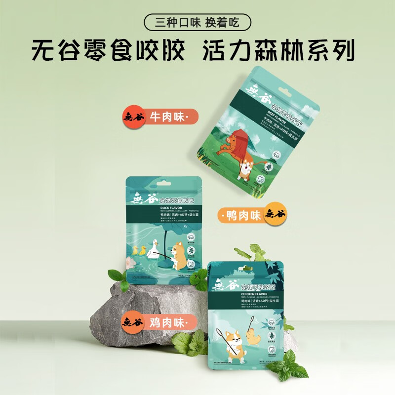 無谷狗狗磨牙棒零食成幼犬通用洁齿骨狗咬胶互动宠物零食161g 【活力森林系列】鸡肉味