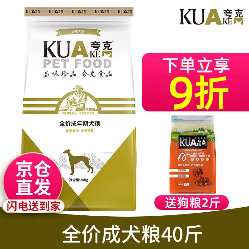 夸克狗粮 泰迪金毛拉布拉多萨摩德牧全犬种通用型狗粮 成犬粮20kg