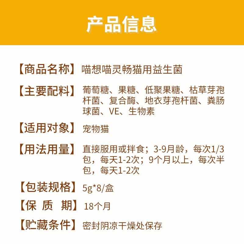 喵想宠物益生菌喵灵畅5g*8包 益生菌猫用肠胃紊乱食欲不助振肠胃宝吸收消化