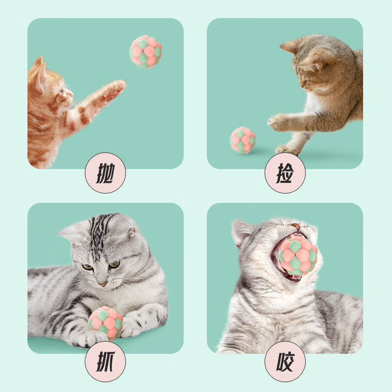 猫玩具球逗猫棒带铃铛猫猫自嗨解闷幼猫小猫磨牙球类宠物猫咪用品 3球3色(A款)