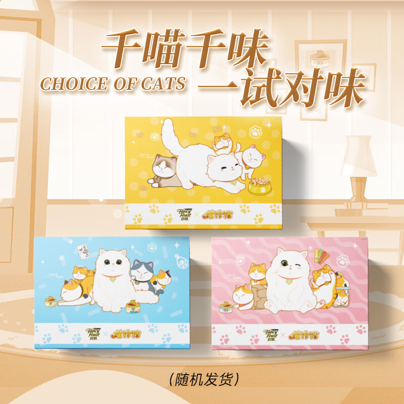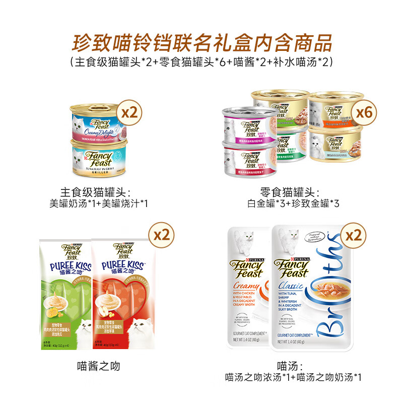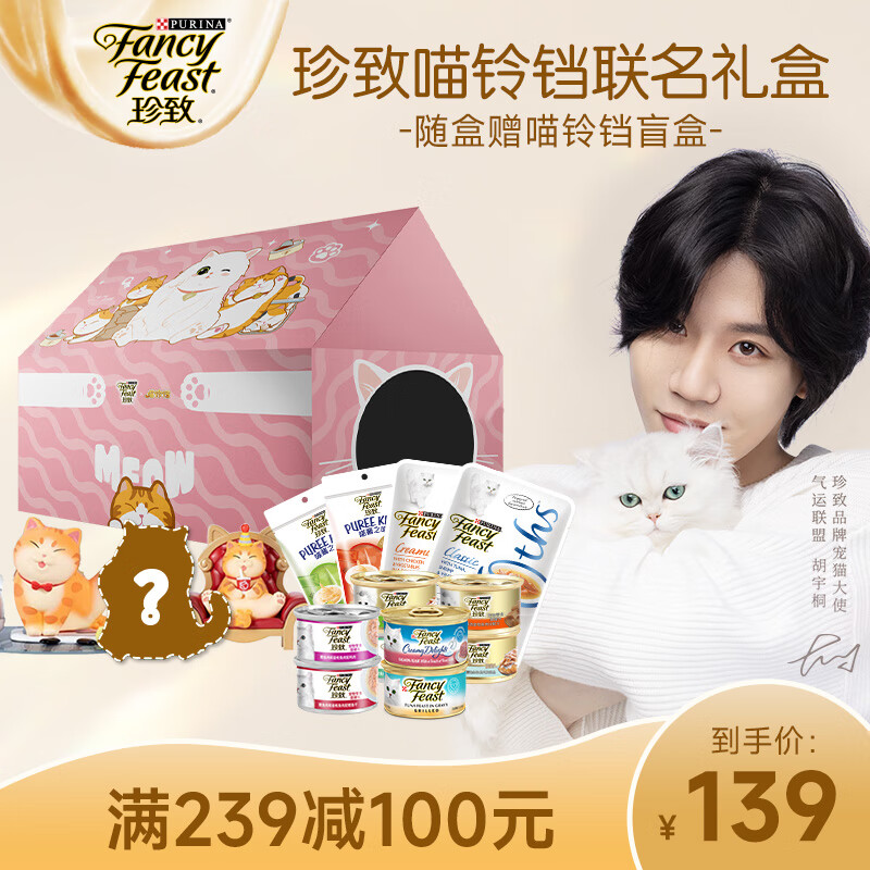 珍致喵铃铛联名礼盒(限定盲盒*1 主食级猫罐头*2 零食猫罐头*6 喵酱*2 补水喵汤*2 随机礼盒喵屋*1)