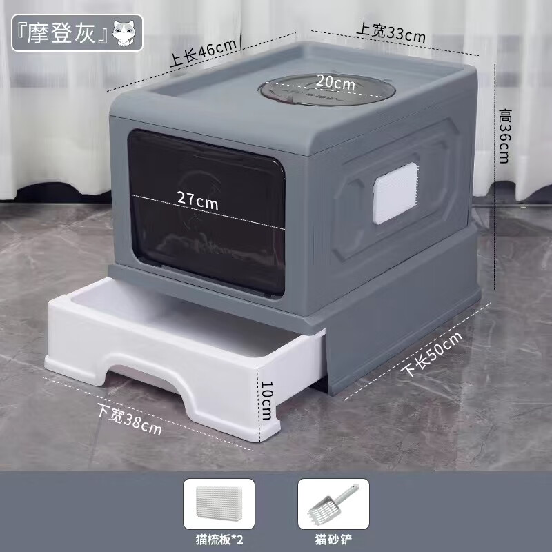 派可为全封闭式猫砂盆特大号防外溅防臭抽屉式猫咪厕所幼猫便盆猫蹭痒 摩卡灰(20斤内)