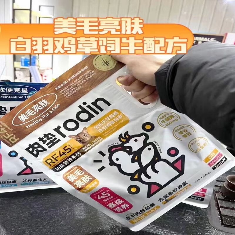 肉垫RF45功能营养系列全期猫粮 美毛肠胃清火增肥猫主粮 白羽鸡 草饲牛【美毛亮肤 5kg】 RF45功能营养系列 全期猫粮