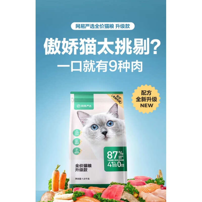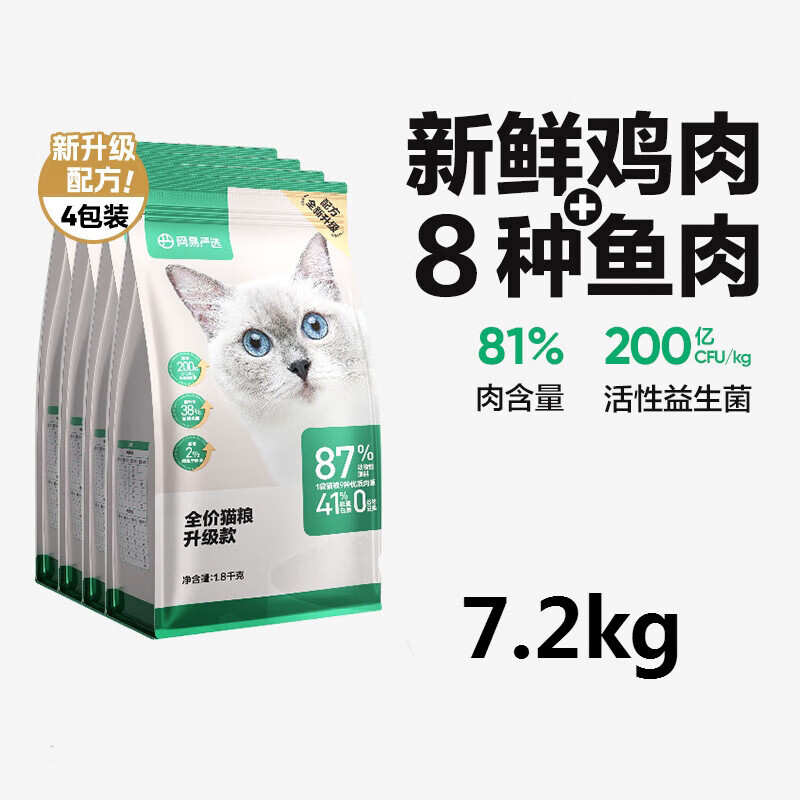 网易严选猫粮 成猫增肥猫粮营养全期无谷全价鱼肉粮7.2kg幼猫猫粮 【鱼肉味】全价猫粮 3.0 升级 7200g