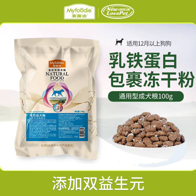 麦富迪乳铁蛋白狗粮 通用型营养天然犬粮 成犬粮100g