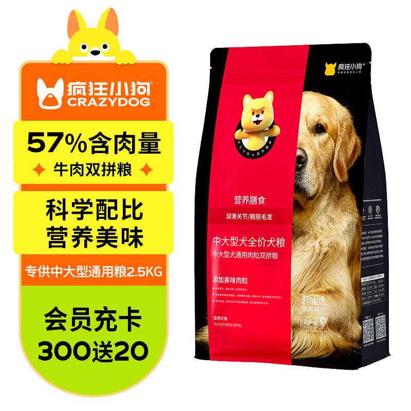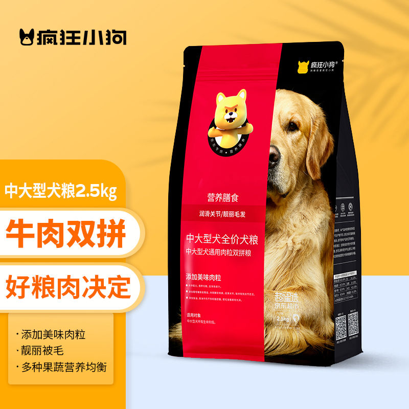 疯狂小狗 京东定制款宠物狗粮 金毛拉布拉多阿拉斯加萨摩耶德牧中大型幼犬成犬粮 牛肉双拼粮2.5kg