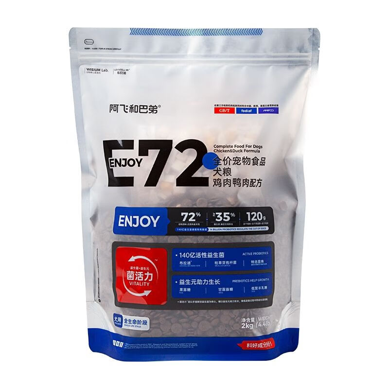 阿飞和巴弟E72冻干狗粮无谷2kg泰迪比熊金毛大中小型成幼犬通用 2kg(4斤) 中大型犬大颗粒