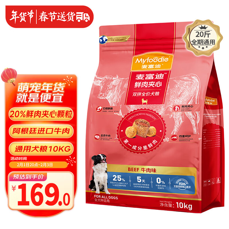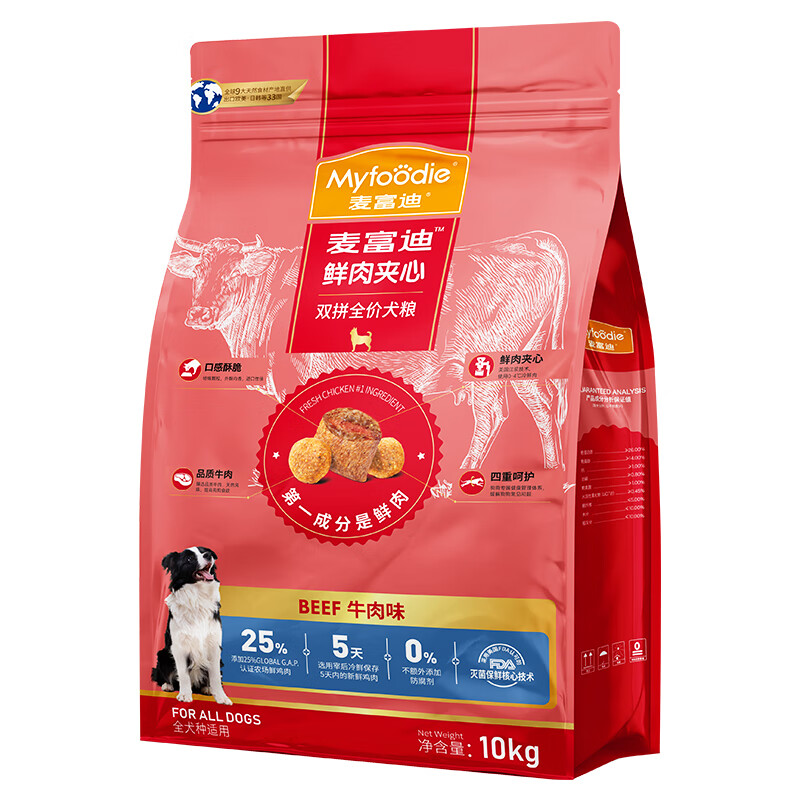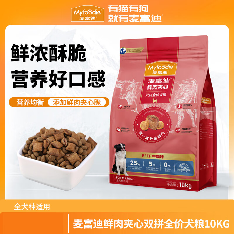 麦富迪鲜肉夹心狗粮 柴犬哈士奇泰迪大小型犬通用型夹心双拼粮 (牛肉夹心)全期通用犬粮10kg