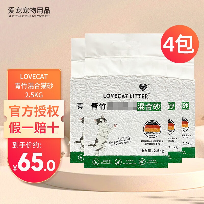 爱宠爱猫猫砂 love cat猫砂豆腐猫砂原味绿茶植物猫砂除臭易结团可冲马桶 青竹混合猫砂 5斤*4包