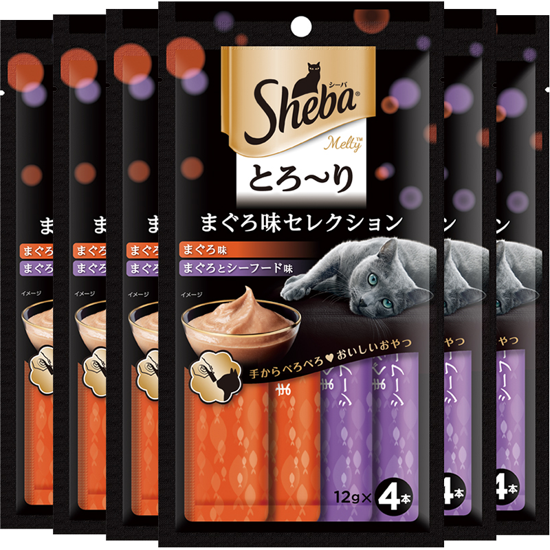 希宝Sheba猫湿粮 成猫大龄猫宠物零食猫条 泰国进口metly舔食软包 吞拿鱼海鲜12g*24支(6包)