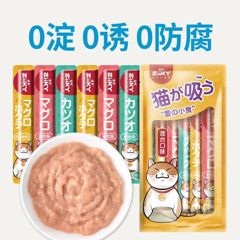 滋奇(Ziiky)猫条猫零食 补充营养猫咪零食 猫罐头成猫幼猫妙鲜补水湿粮包增肥 【试吃】鳕鱼籽味(15g*6支)