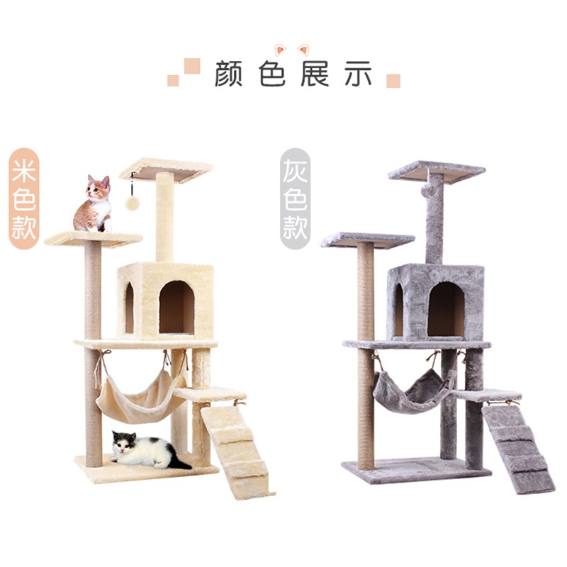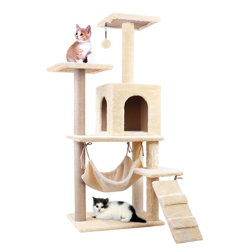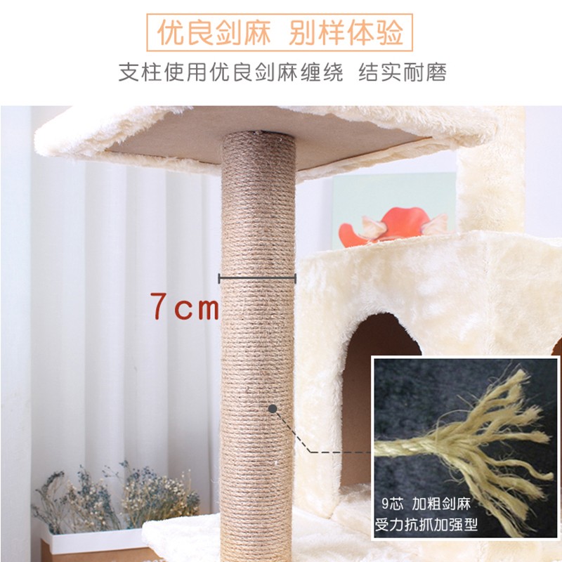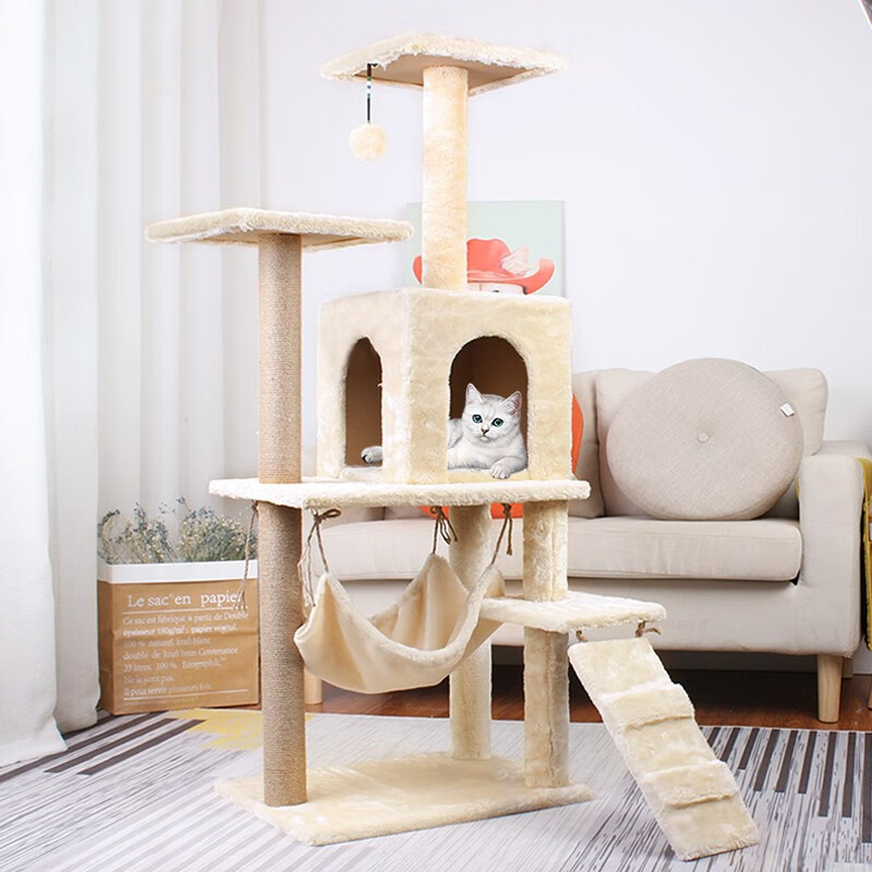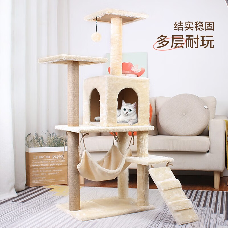 憨憨宠 猫爬架四层大型豪华剑麻猫玩具猫窝猫抓板猫抓柱猫跳台猫架子宠物猫用品猫咪玩具猫树 米色