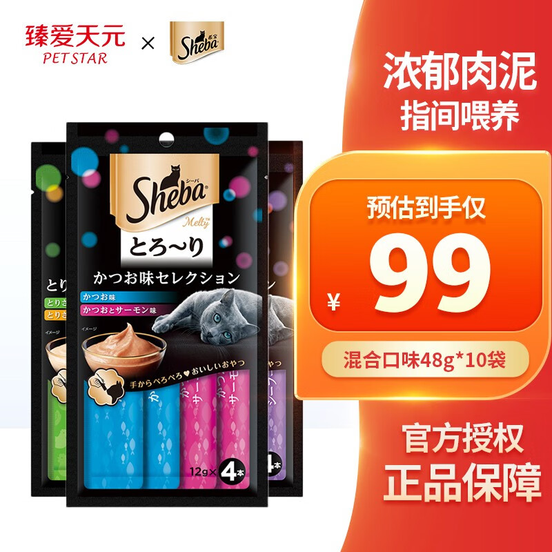 希宝(Sheba)猫条猫零食Sheba猫湿粮舔食猫条 混合口味48g*10袋