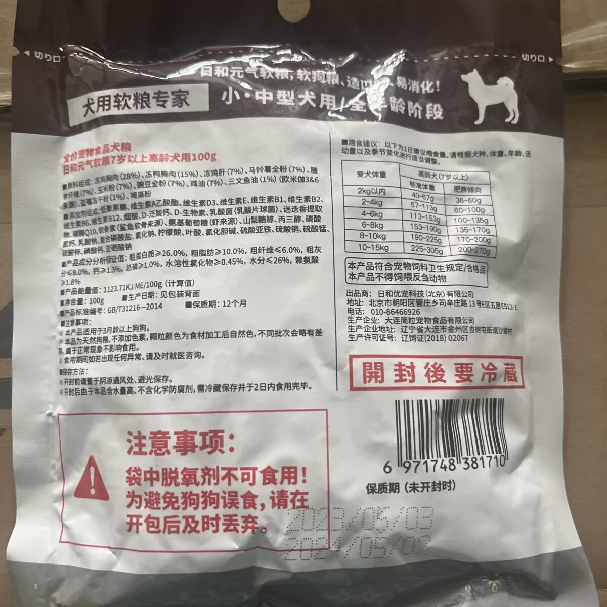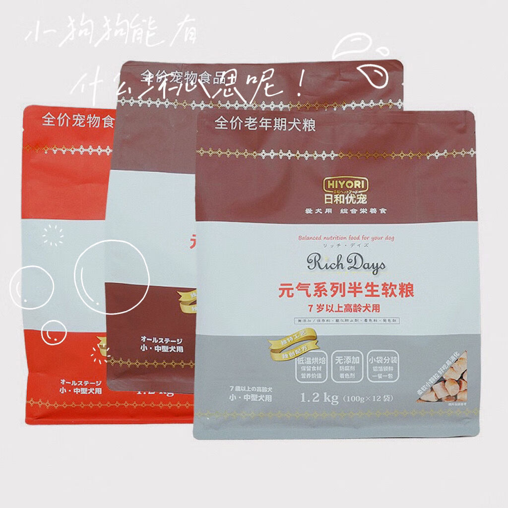 日和优宠软粮元气鸡肉牛肉全犬粮小型犬高龄犬狗粮1.2kg100g 老年犬 100g 1桶 *10包