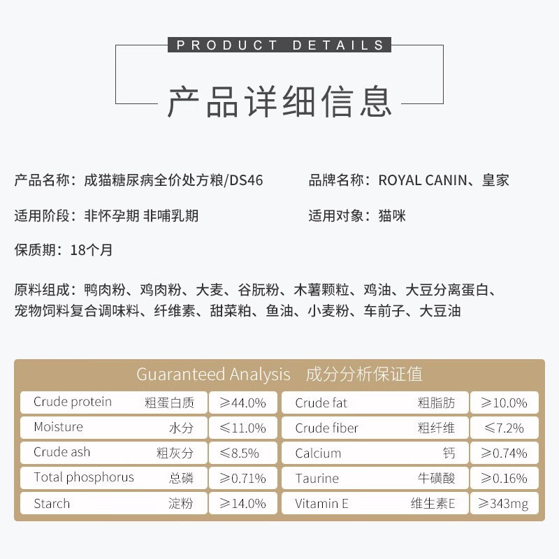 皇家猫糖尿病处方猫粮 成猫糖尿病全价处方粮DS46宠物猫主粮1.5KG 皇家猫粮成猫糖尿病处方粮1.5kg