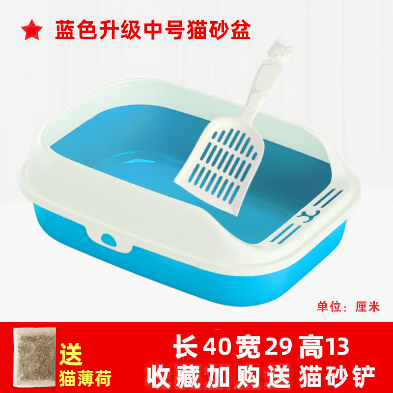 猫砂盆防外溅半封闭式猫厕所特大号超大猫沙盆防臭猫屎盆猫咪用品 【蓝色升级中号】收藏下单餸猫铲