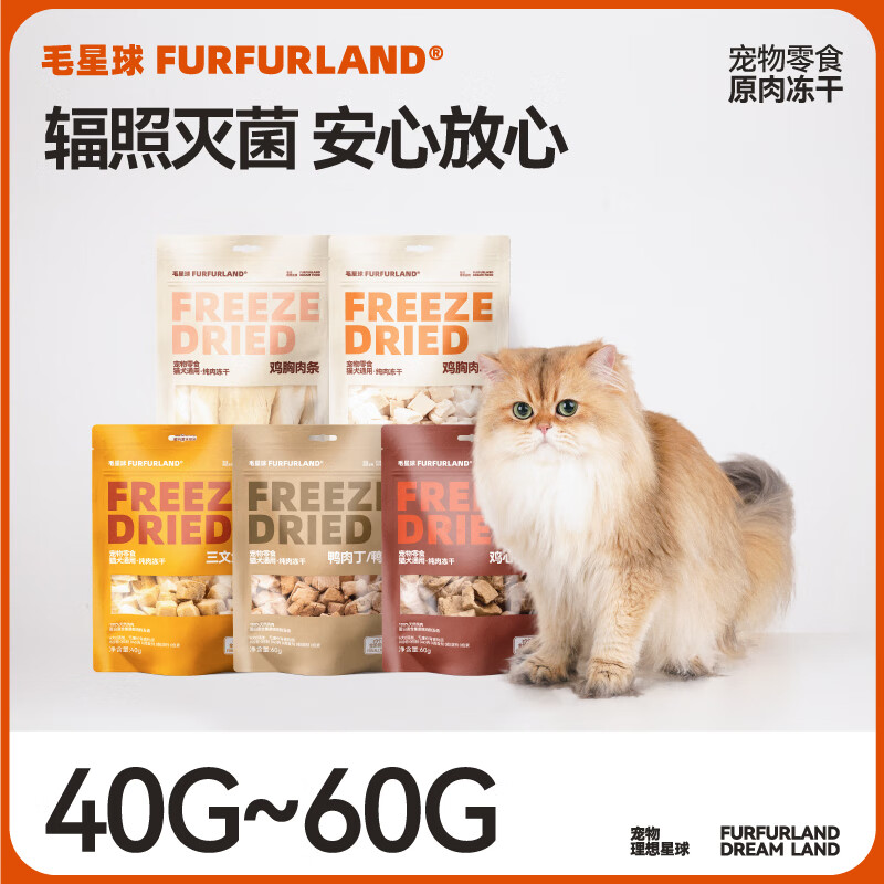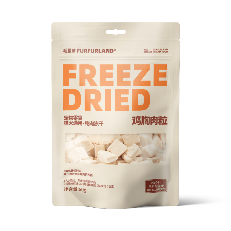 FurFurLand毛星球猫狗通用宠物零食鸡胸肉小粒冻干 鸡胸大条冻干【实发4包】