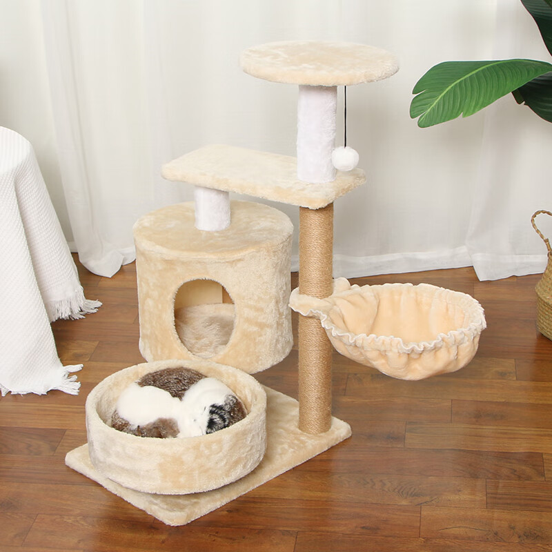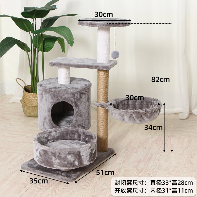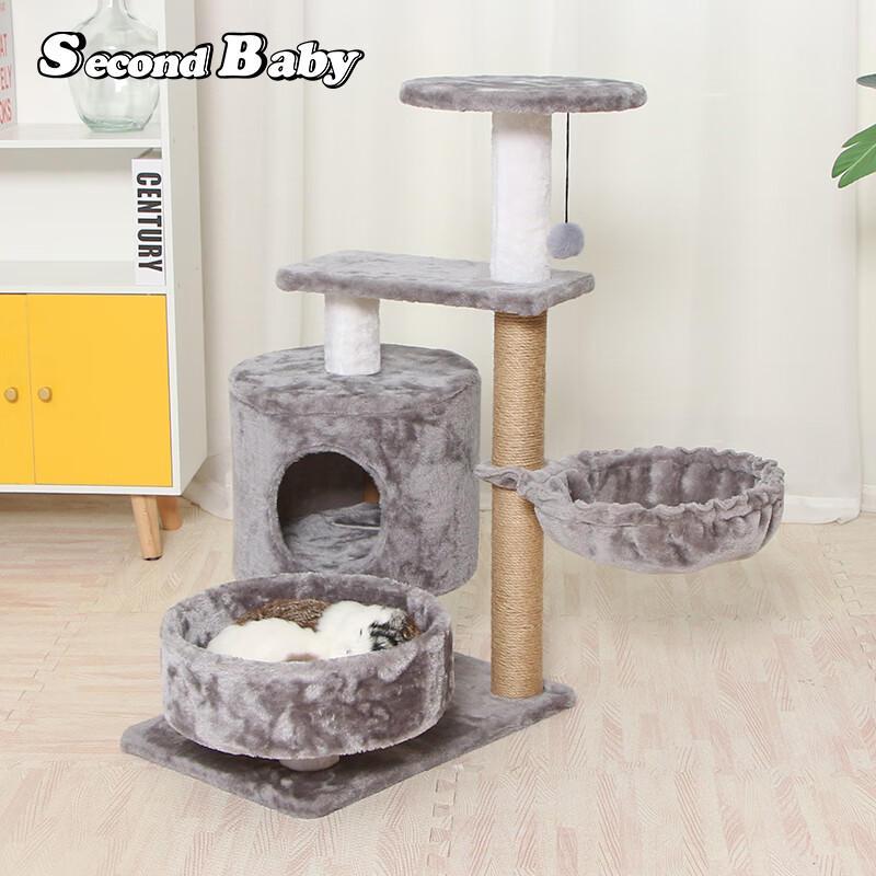 大型猫爬架子猫窝猫树一体四季通用猫抓柱小型多层猫架猫咪用品 绒布秋千床款-灰色(带2窝 2跳台