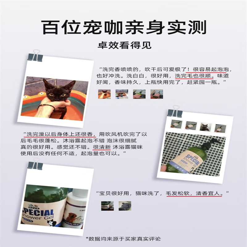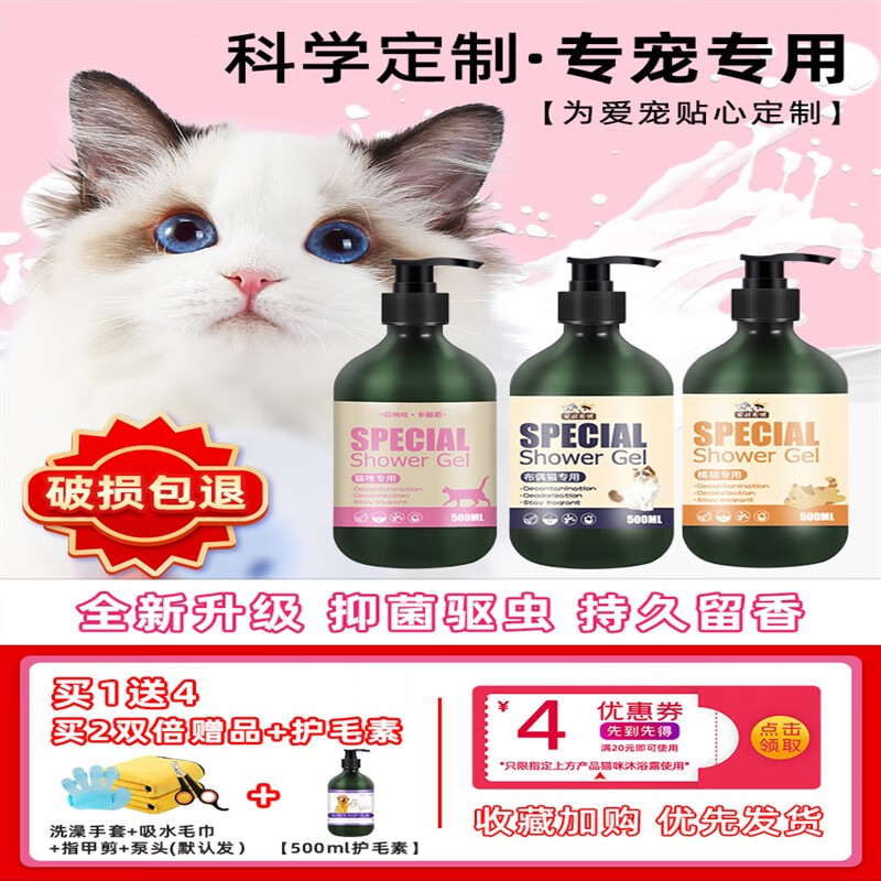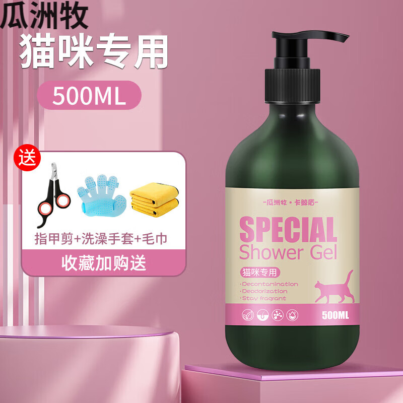 瓜洲牧猫咪专用沐浴露猫猫浴液长短毛幼猫蓝猫除螨洗澡香波宠物用品 猫咪通用买1宋3现货速发