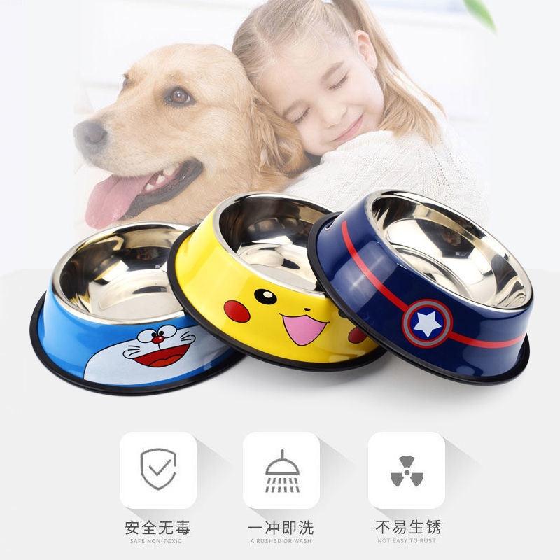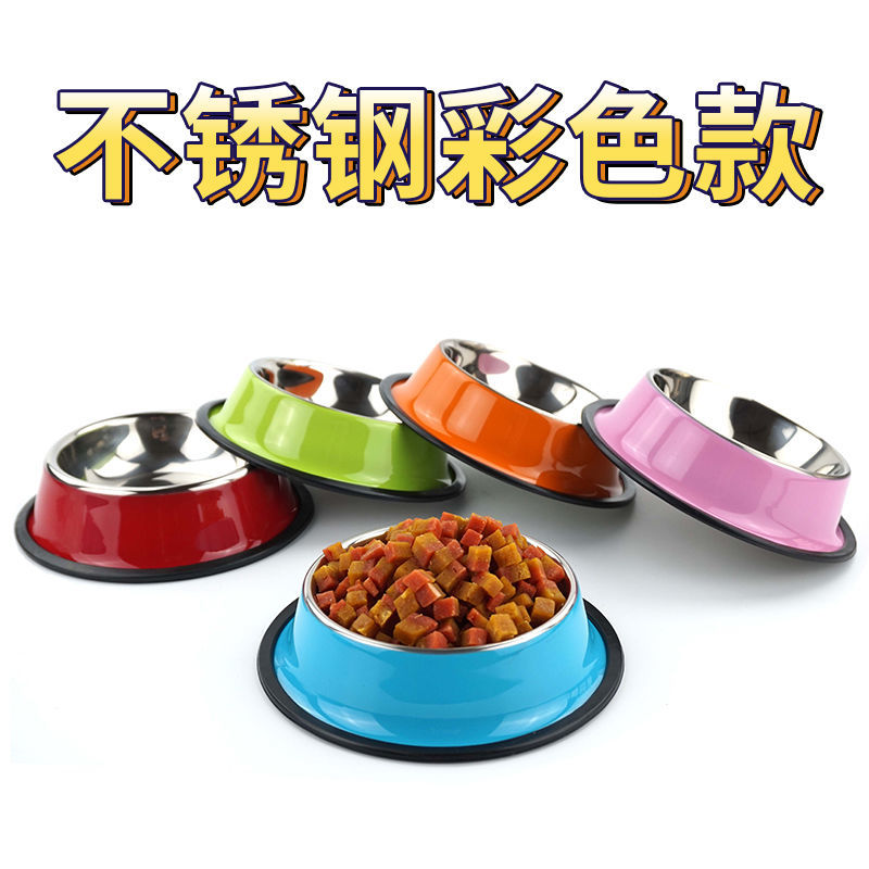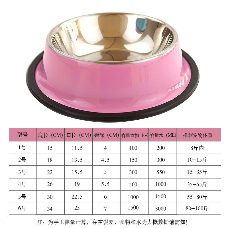HKNA 狗碗猫碗防打翻不锈钢小型大型犬狗狗水碗宠物饭盆食盆狗盆狗粮碗 9010单个粉色 1号适合8斤以内猫狗