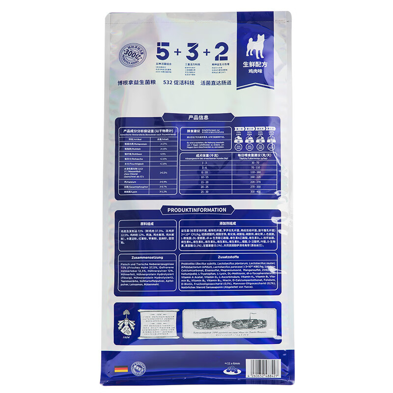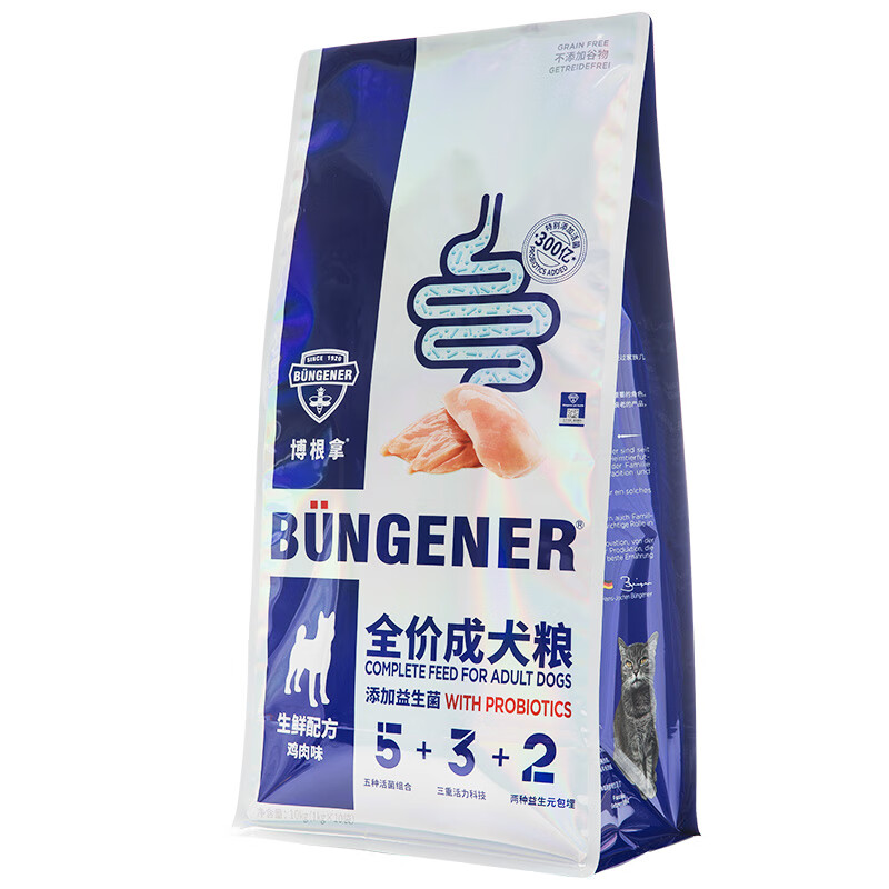 博根拿Büngener 德国品牌 全价成犬粮鲜肉狗粮10kg(1kg*10)生鲜配方鸡肉味添加300亿益生菌 呵护肠道健康