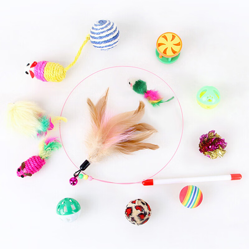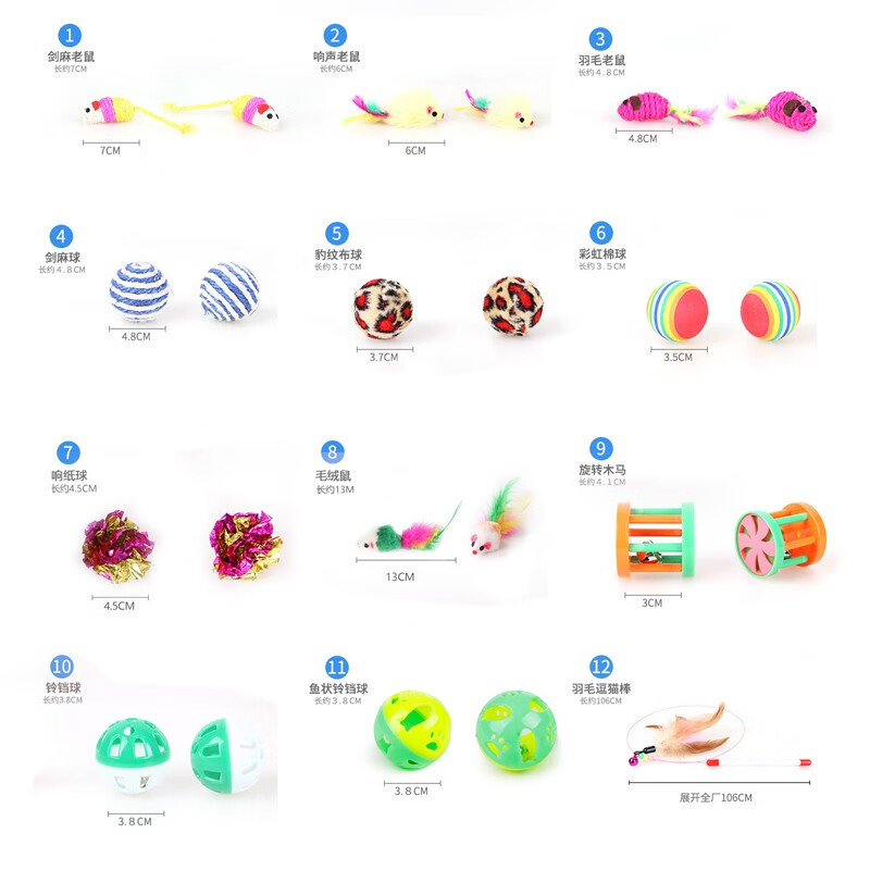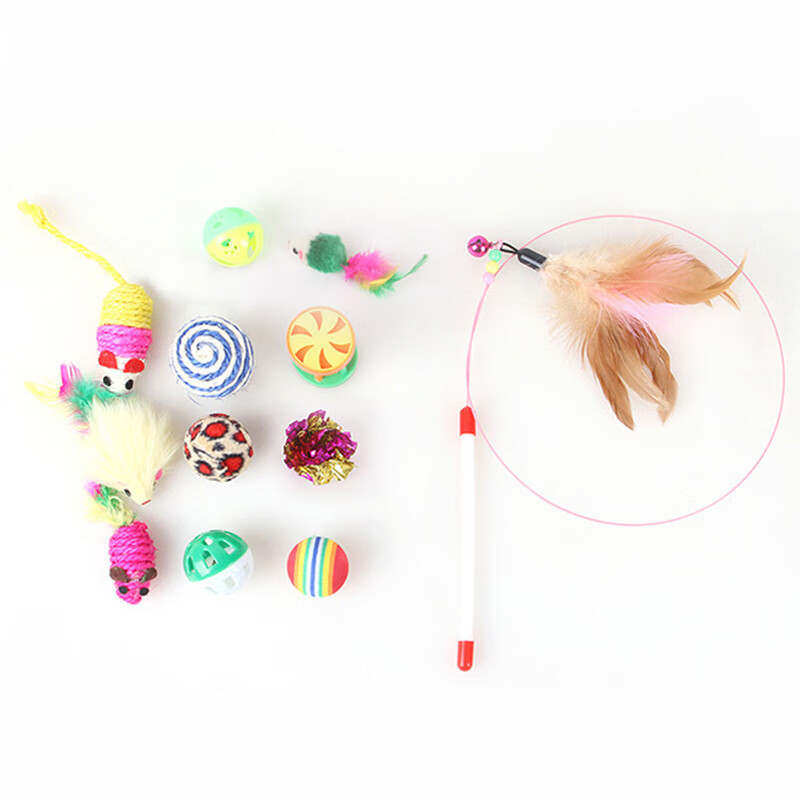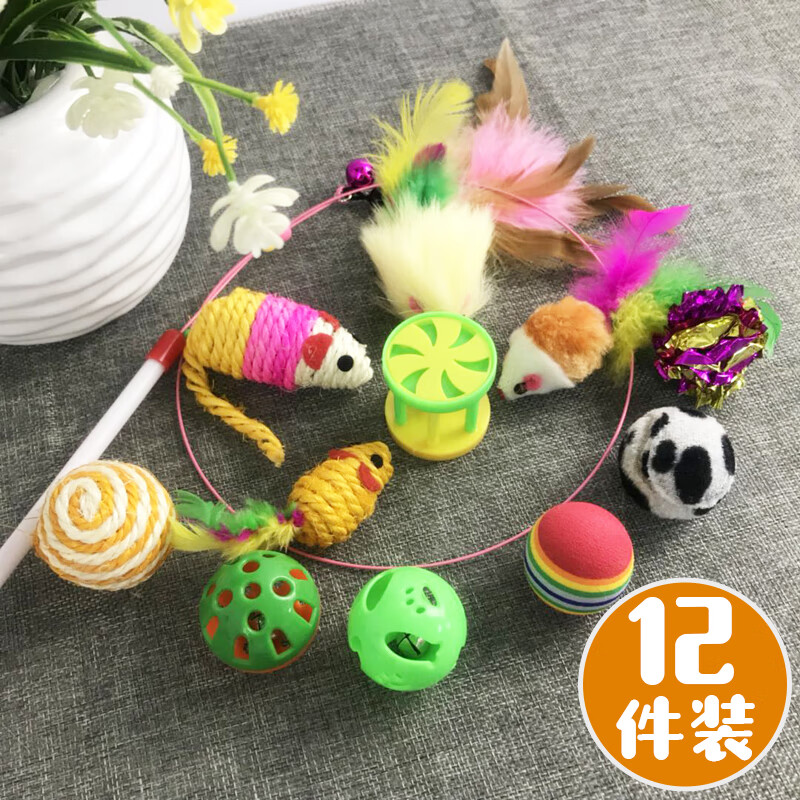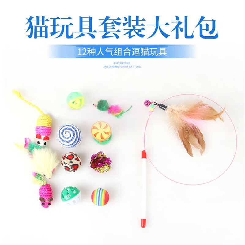 憨憨乐园 宠物猫玩具12件套装大礼包 猫咪喜爱逗猫棒铃铛老鼠剑麻球英短蓝猫幼猫礼物玩具套装