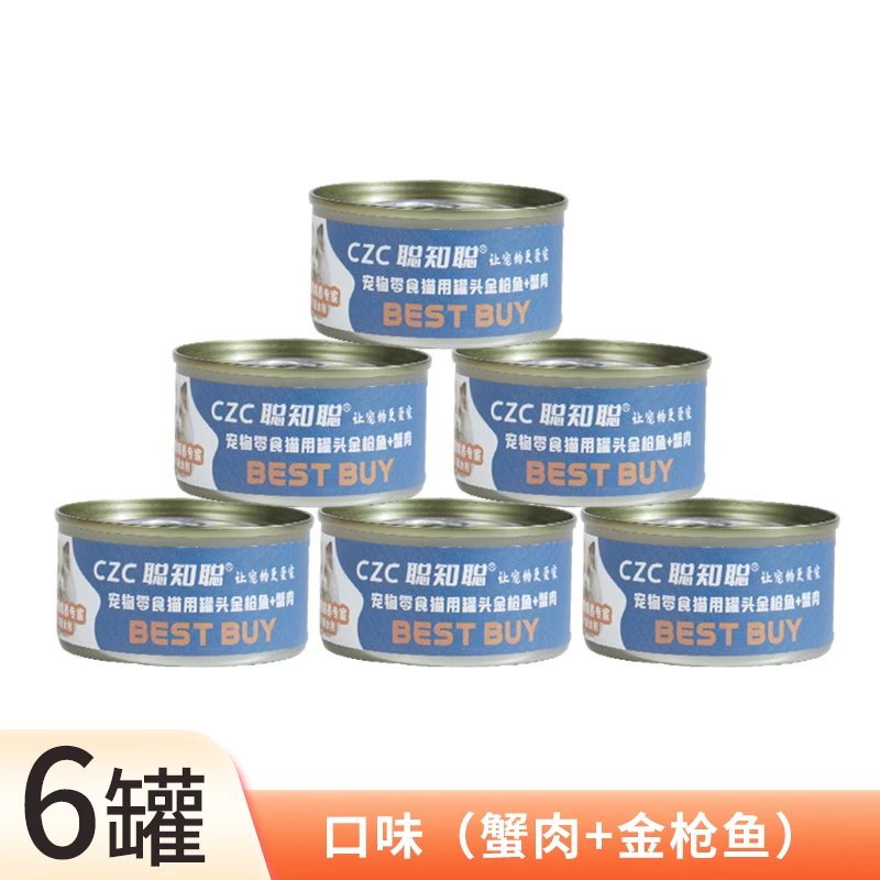 聪知聪猫罐头鲜封全阶段猫罐增肥发腮补充营养猫咪零食妙鲜猫湿粮补水靓 【补钙美毛】金枪鱼 蟹肉85g*6罐 1盒