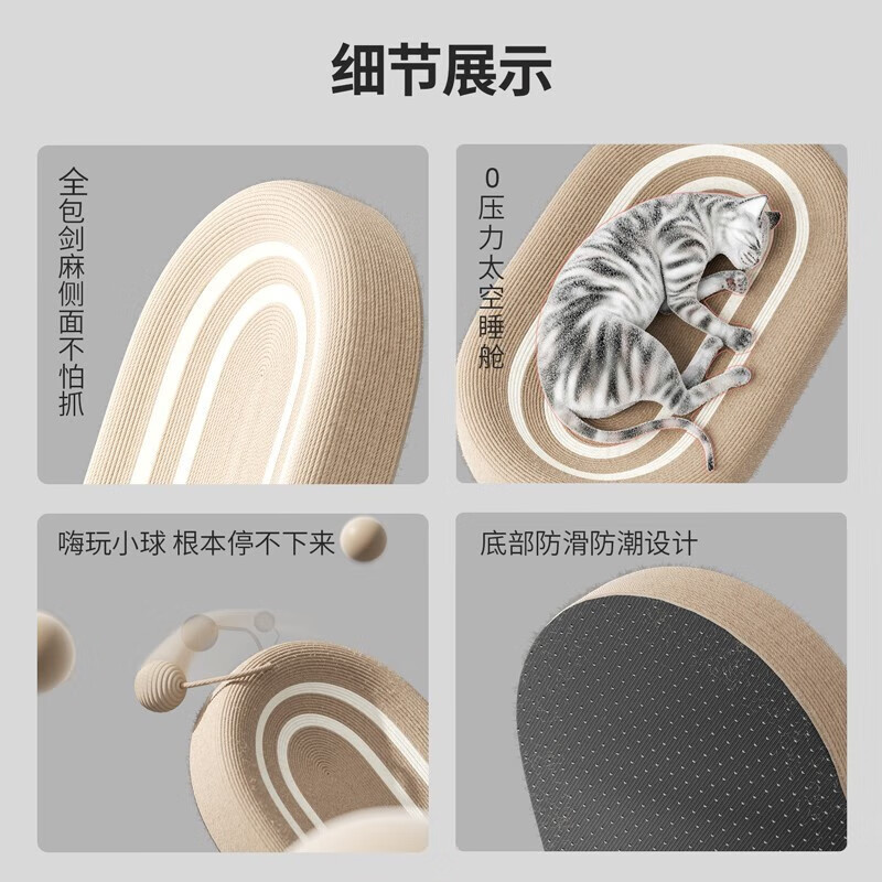 TOMCat猫抓板窝猫窝一体圆形磨爪剑麻猫爪板耐磨耐用瓦楞纸不掉屑猫咪用品玩具 冲量【全剑麻】跑道60cm*40cm