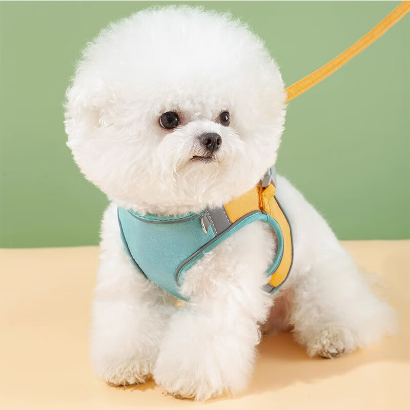 嬉皮狗(hipidog)小狗狗牵引绳背心式牵遛狗绳小型幼犬博美泰迪比熊网红宠物用品 粉蓝拼接 3M伸缩绳组合 L号(建议体重8-12斤)
