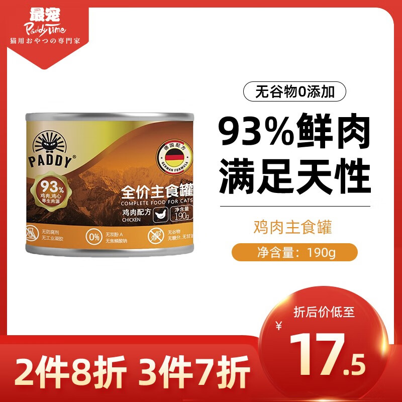 澳洲品牌 最宠(Paddy Time)猫湿粮 猫咪罐头全价无谷主食级湿粮软包成猫幼猫通用猫咪主食罐头 最宠主食猫罐-鸡肉190g