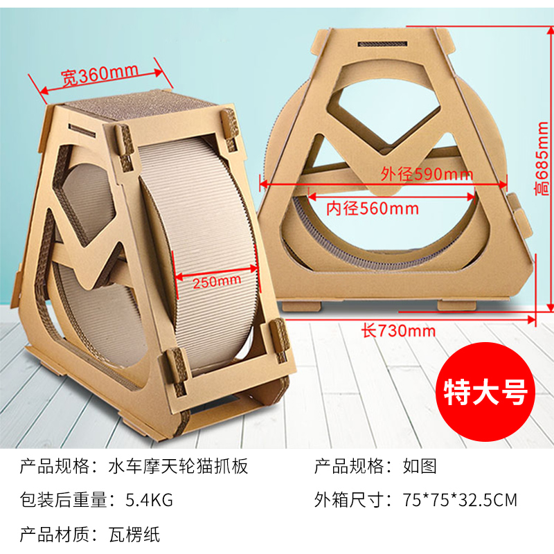 跃越(yueyue)特大号猫抓板摩天轮跑步机懒猫健身减肥器猫咪磨爪猫窝转动猫玩具 【特大号】得酷水车摩天轮