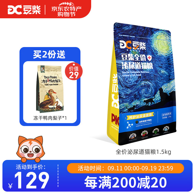 豆柴(docile)全价呵护泌尿道猫粮全阶段通用幼猫成猫均衡营养英短美短猫粮 泌尿功能猫粮1.5kg