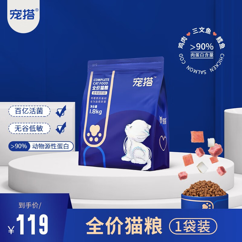 宠搭猫粮无谷全价 幼猫成猫益生菌猫粮 1袋(1.8kg)