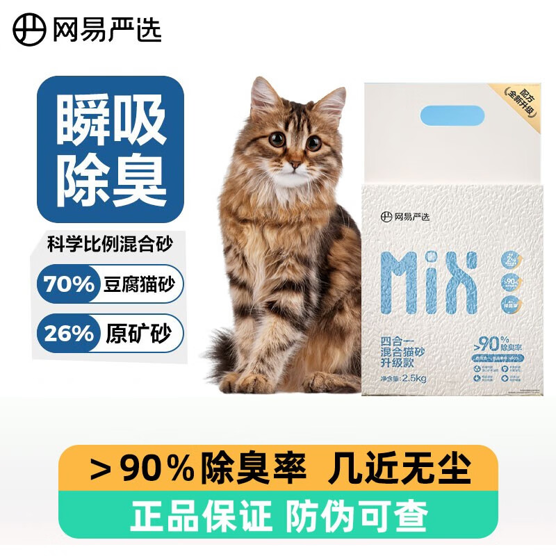 网易严选猫砂 4合1豆腐膨润土混合猫沙三重除臭高效结团几近无尘 mix混合猫砂2.5kg