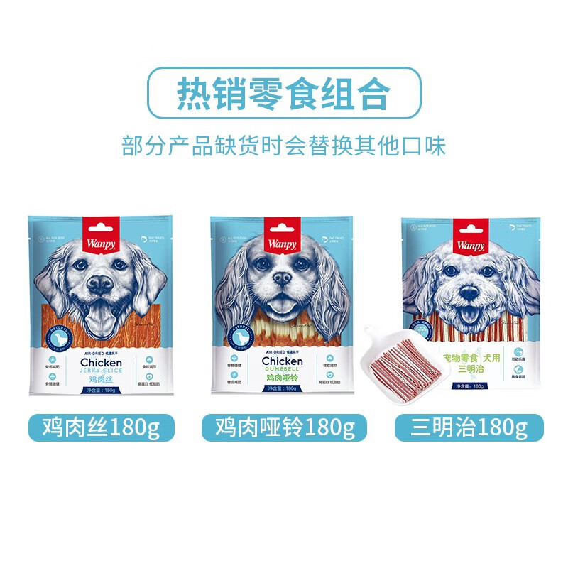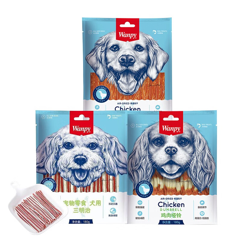 顽皮(Wanpy)宠物狗零食 泰迪狗狗磨牙棒 成犬幼犬训狗奖励肉干肉条 狗零食组合540g(180g*3)