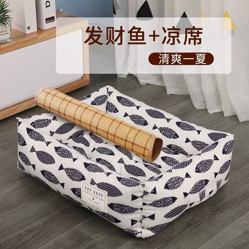 汪汪部落猫狗窝狗床可拆洗猫咪床宠物床猫垫子猫咪用品四季冬季保暖猫床 发财鱼 凉席 S(适合5斤内宠物)