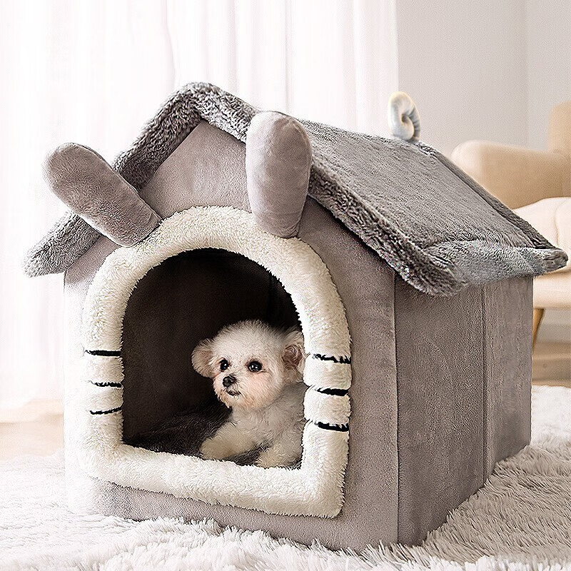 迪普尔 狗窝冬季猫窝秋冬天可拆洗封闭式法斗保暖房子狗屋泰迪小型犬 L-适合20斤内 *