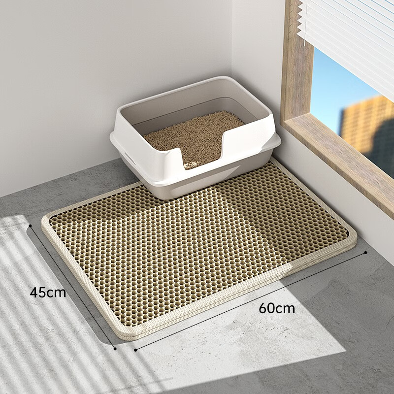 HELLOLEIBOO徕本猫砂垫猫砂盆防外溅垫子防带出超大双层过滤漏控砂垫宠物猫咪 米黄【60*45cm】