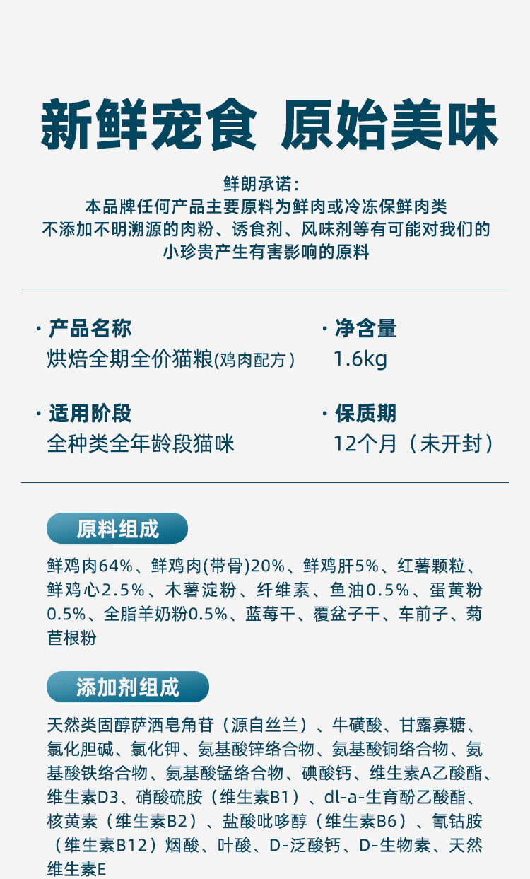 鲜朗 烘焙全价全期猫粮 鸡肉口味50g/400g/1.6kg