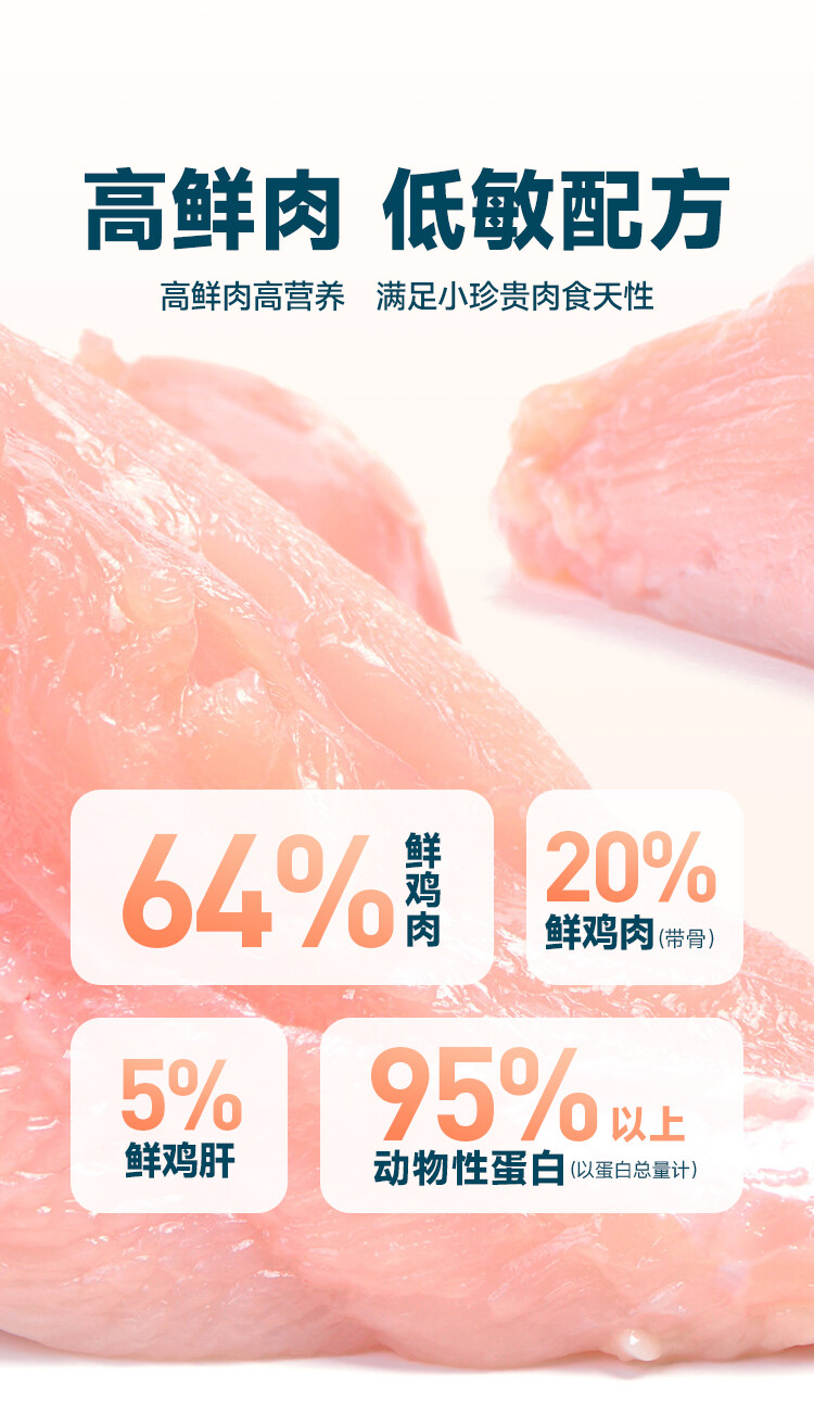 帕特诺尔猫粮 低敏纯鸡肉四拼冻干猫粮1kg