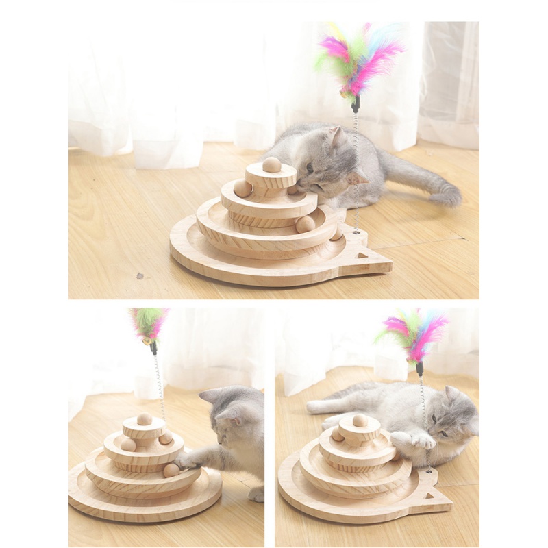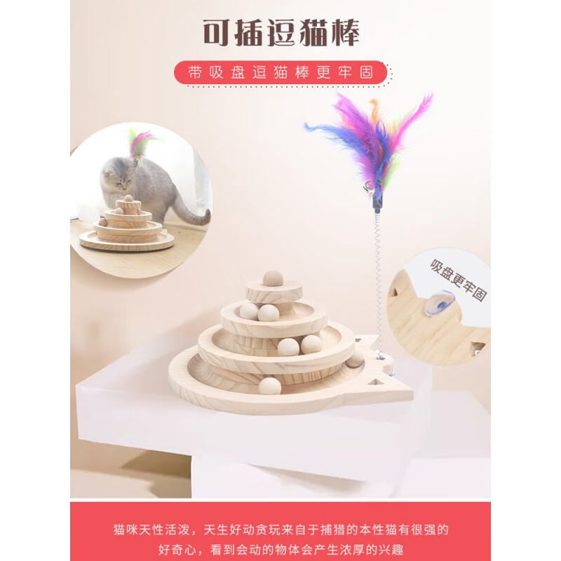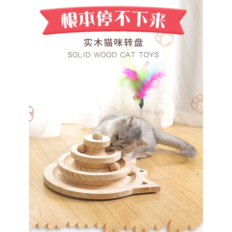猫玩具猫转盘实木猫猫自动自嗨逗猫棒薄荷球小猫解闷神器猫咪用品 鱼形双层转盘抓柱