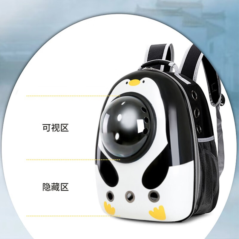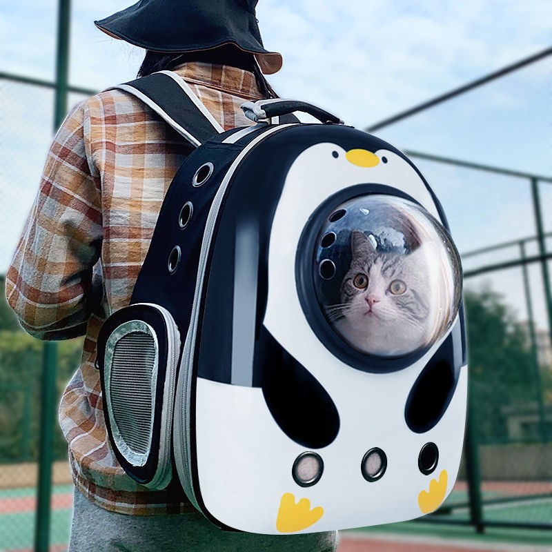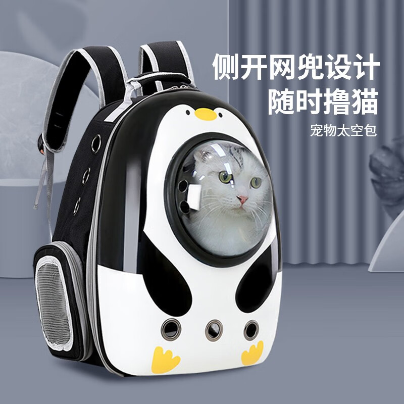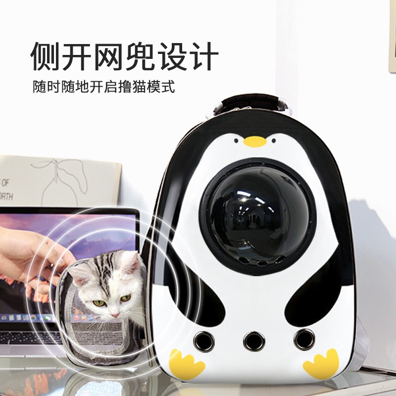 贞喜气 猫包外出透气太空舱便携双肩包大号宠物包猫背包太空包狗狗猫咪出行 【小企鹅】