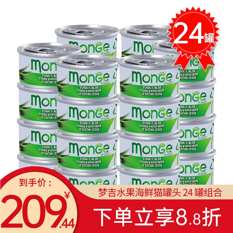 MONGE意大利梦猫罐头吉天然果冻水果金枪鱼成幼猫老年猫湿粮零食 24罐 水果系列 幼猫 鸡肉 芦荟