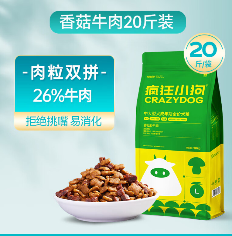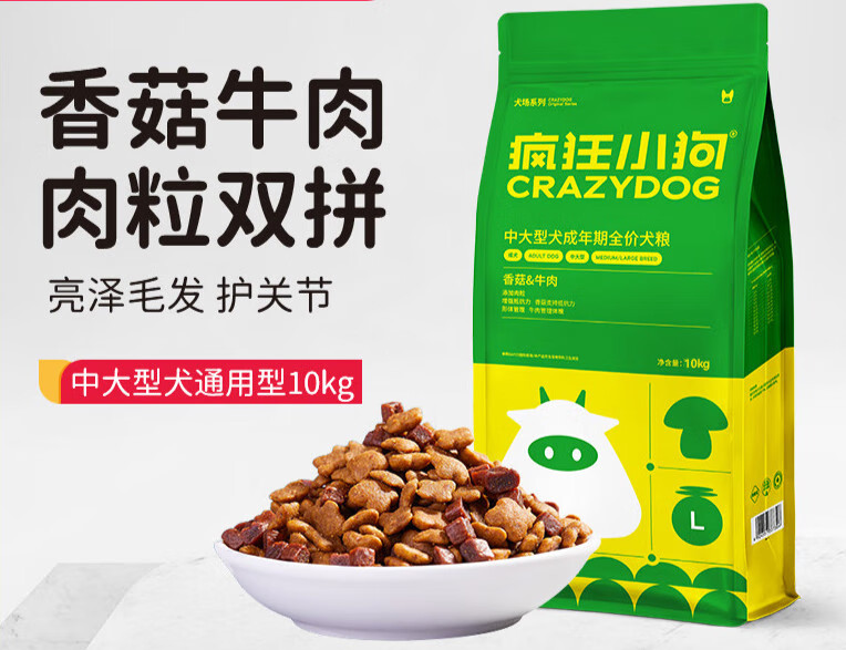疯狂小狗狗粮通用型金毛拉布拉多萨摩耶成犬中大型犬 肉粒双拼10kg添加肉粒美毛壮骨 0lb